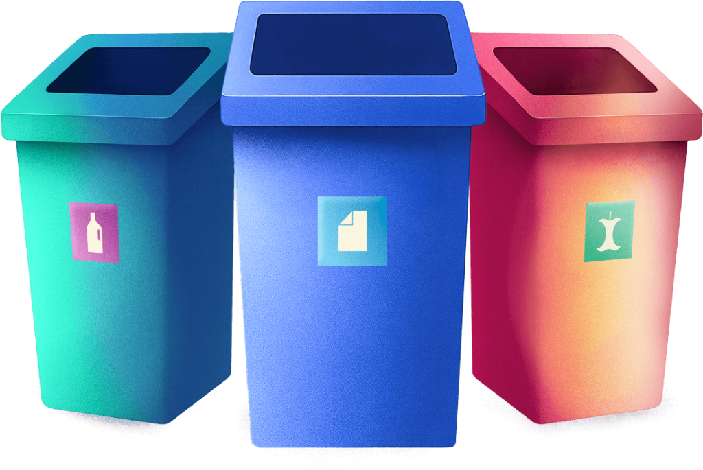 Það hvetur til flokkunar ef ílát fyrir helstu úrgangsflokka eru fallega upp sett í miðrými og/eða þar sem ruslið fellur til, t.d. pappírstunna við prentarann.
